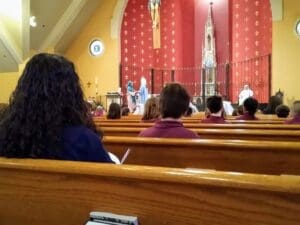 5th Grade is a time of transition between elementary and middle school. It is my goal to help students make that transition in an exciting way. I set high expectations for my students as we approach middle school so that they are prepared for the rest of their educational journey. During Religion in 5th grade, we focus on the Sacraments and the Commandments. Our highlight is presenting the Living Stations of the Cross each Lenten season with our 8th grade students. Social Studies is my favorite subject to teach! We learn about early American history, including the American Revolution where students get to experience this in a hands-on simulation. During science, we learn about the Earth, including it’s layers, atmosphere, and weather. We also spend time understanding the ecosystems and biomes of our world before delving into physical science. Reading and language arts features small group work designed to challenge and meet students where they are. We also begin novel studies in 5th grade to put our years of reading skills to work!